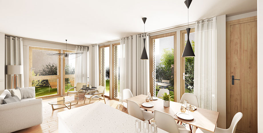 Dans chacun des appartements, le travail effectué sur la luminosité naturelle, les nombreuses baies vitrées, le confort acoustique, l’isolation thermique et la forte végétalisation extérieure permettent de se sentir éloigné de l’effervescence urbaine.