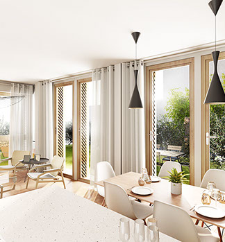 Dans chacun des appartements, le travail effectué sur la luminosité naturelle, les nombreuses baies vitrées, le confort acoustique, l’isolation thermique et la forte végétalisation extérieure permettent de se sentir éloigné de l’effervescence urbaine.
