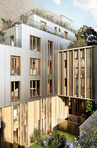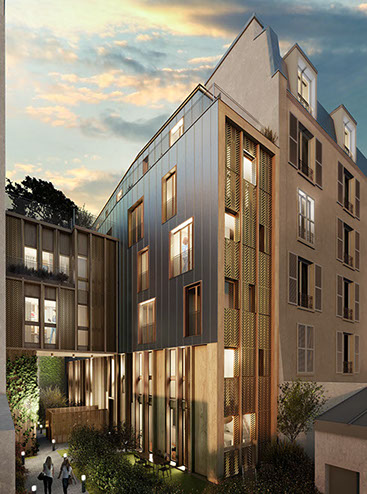 Ce projet s’inscrit dans une démarche responsable ; nous avons favorisé la filière sèche, les matériaux biosourcés et les plantations et espaces verts dans cette ville dense et minérale qu’est Paris.